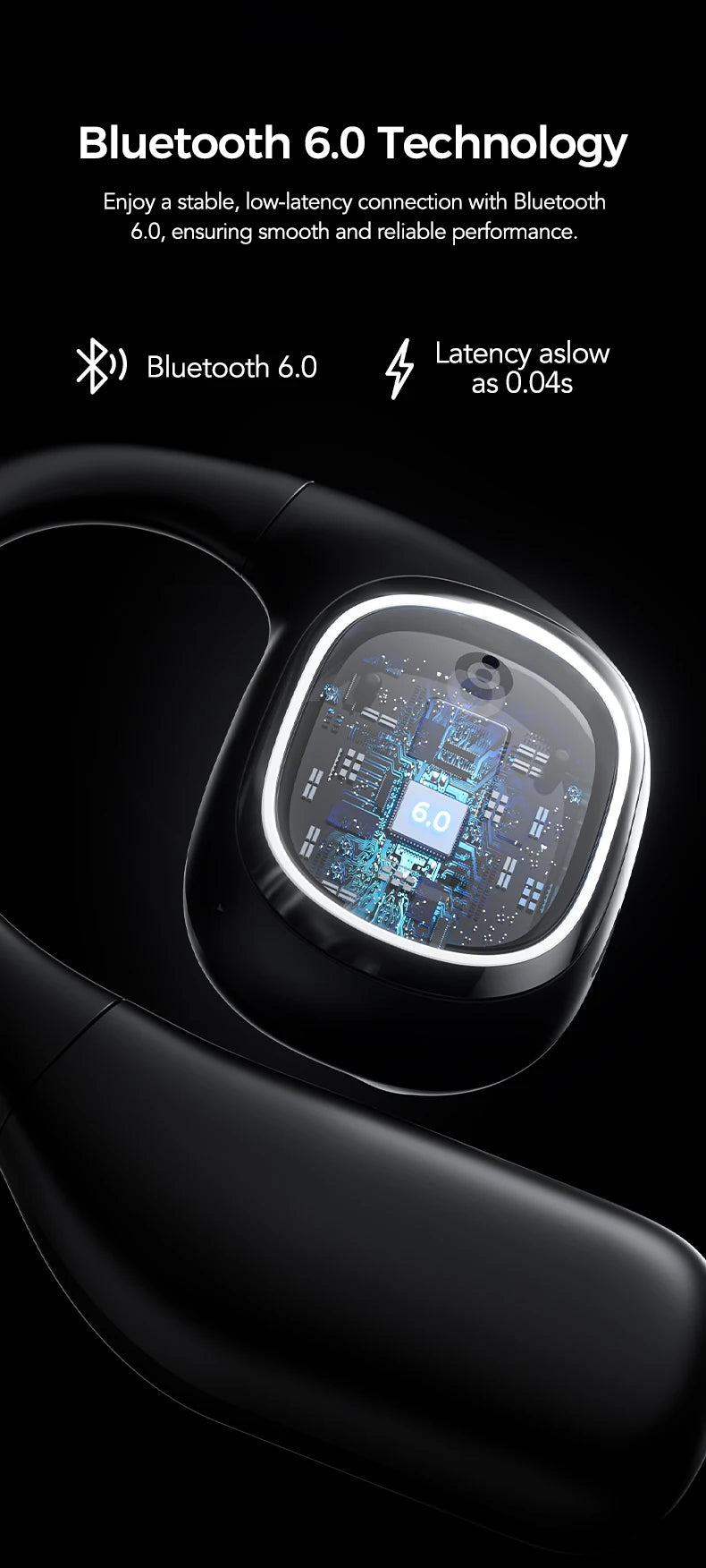 Design & Fit: Open-Wear Style (OWS) with Ear Hook design for a secure fit during sports and outdoor activities.